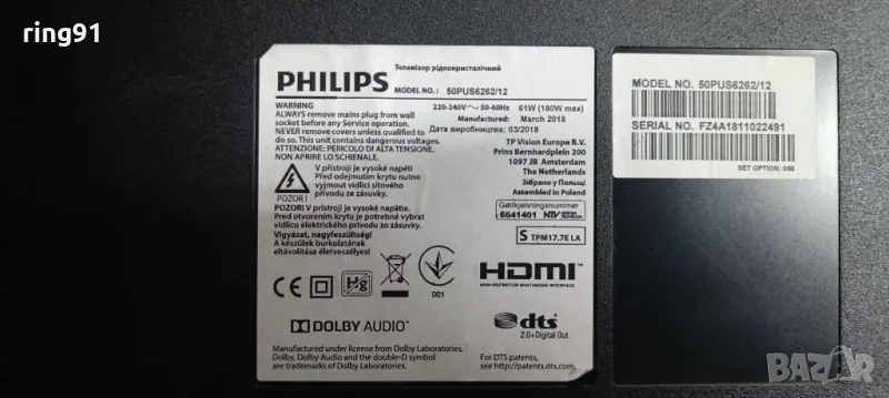 Захранване - 715G8672-P02-000-002H TV Philips 50PUS6262/12 → Обява 49388226