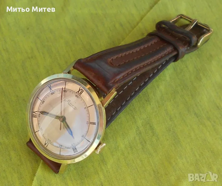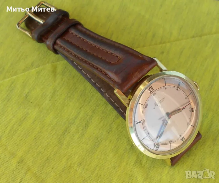 Маркираният механизъм - кал.49 работи нормално и поддържа точно време. Нямам данни за последно правена профилактика.