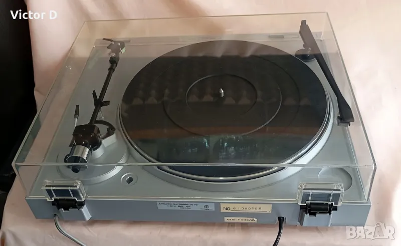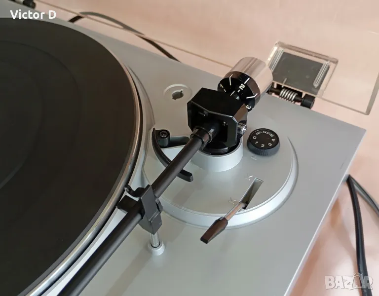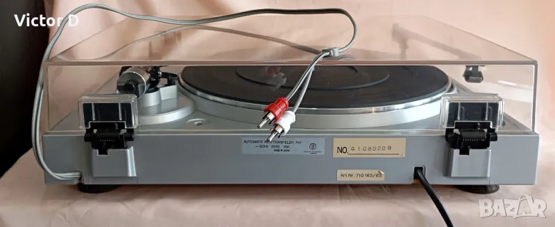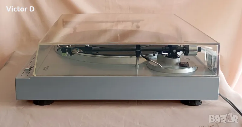 Профилактиран и проверен и почистен.Произведен в Япония.Точни обороти.Здрава игла.Добро визуално състояние.Идеален вид на капака.Ремъчно задвижване.Автоматично изключване след просвирване.Стоп бутон.Сменяем шел.Ръчни настройки-противотежест и антискейтинг.Бонус-рамо за почистване на плочата по време на просвирване.