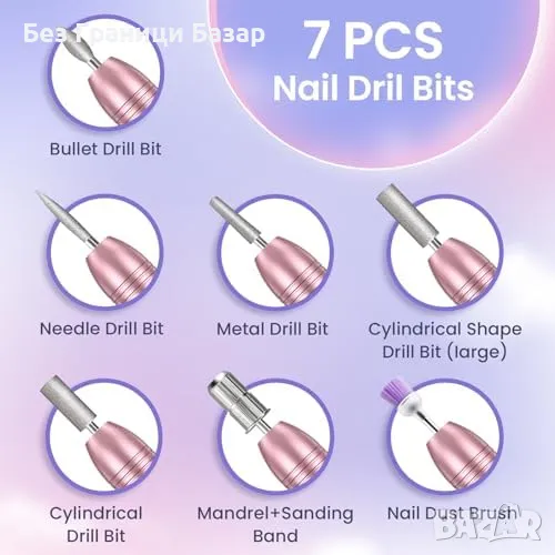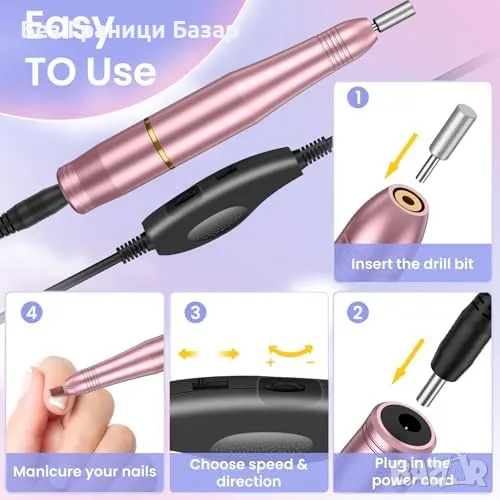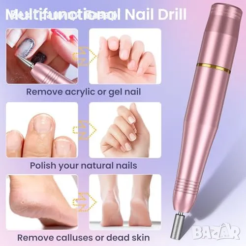 електрическа пила за нокти – за оформяне, полиране, почистване и отстраняване на гел и акрил.
