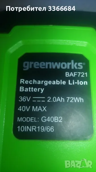 Батерия Greenworks, снимка 1 - Друга електроника - 49391647 Батерия Greenworks, снимка 2 - Друга електроника - 49391647 Батерия Greenworks, снимка 3 - Друга електроника - 49391647 Батерия Greenworks, снимка 4 - Друга електроника - 49391647 Батерия Greenworks, снимка 5 - Друга електроника - 49391647 1/5