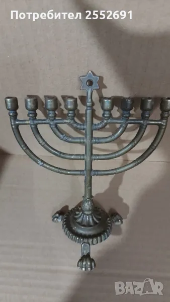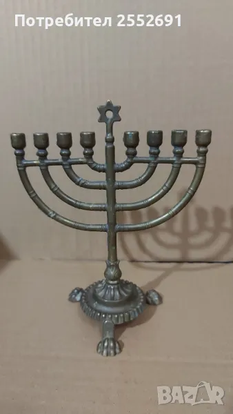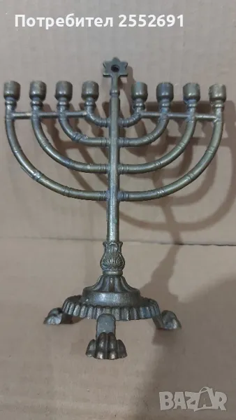 Старинен, масивен, бронзов ЕВРЕЙСКИ свещник с крачета. Височина- 18см.