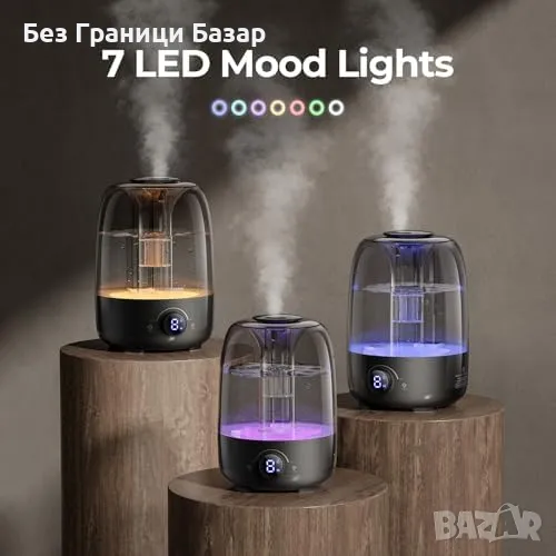 Нов Овлажнител за въздух с арома дифузер и 7-цветна LED светлина за дом стая
