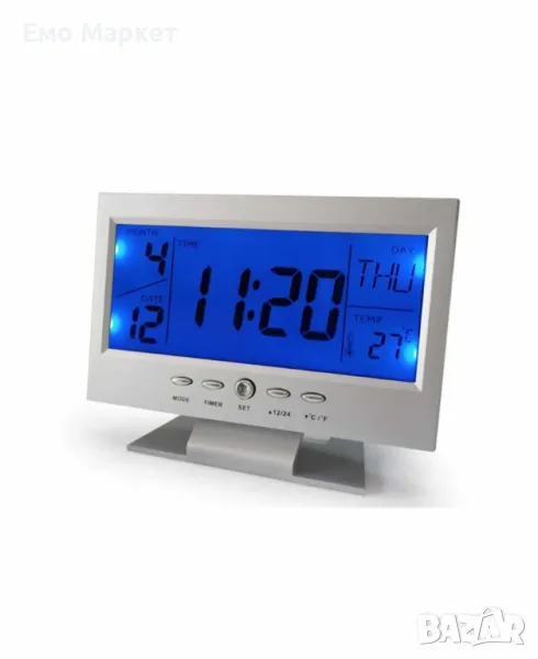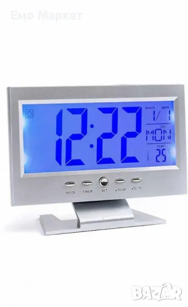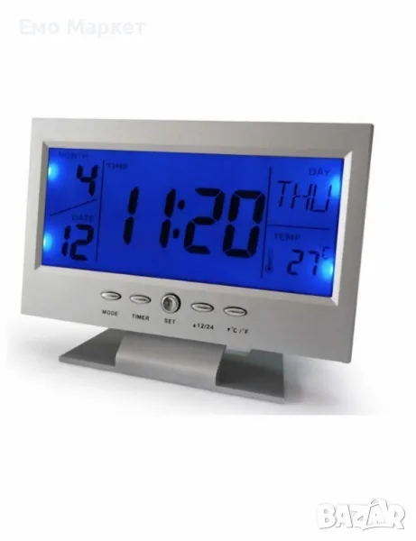 Функция за гласово управление (когато пляскате с ръце, екранът на часовника ще светне, което ви позволява да забележите колко е часът и колко градуса има в съответната стая)