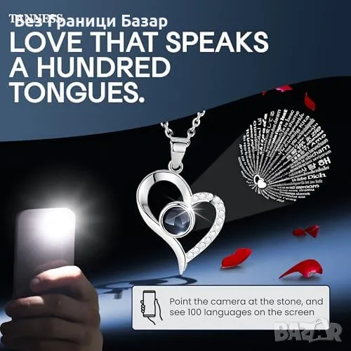 Колие с послание "Обичам те" на 100 езика – уникален и сантиментален акцент.