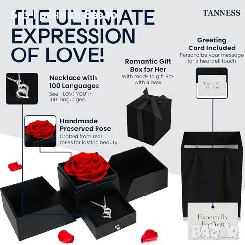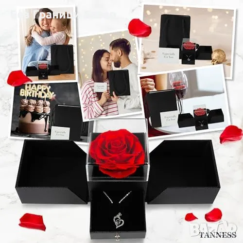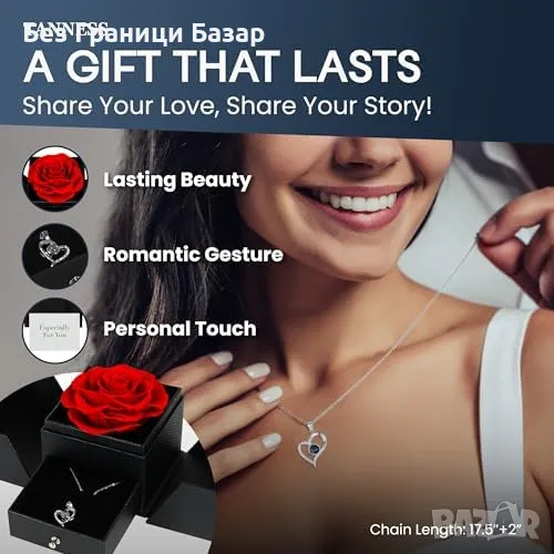 Нова Вечна роза и колие „Обичам те“ – Луксозен подарък за майка жена
