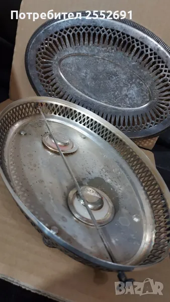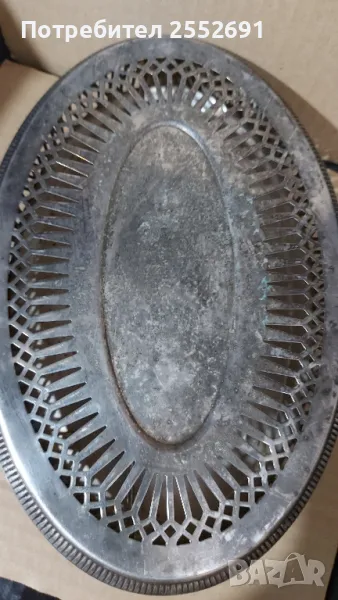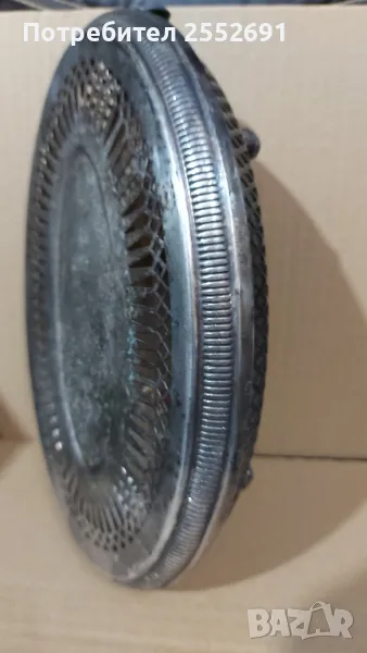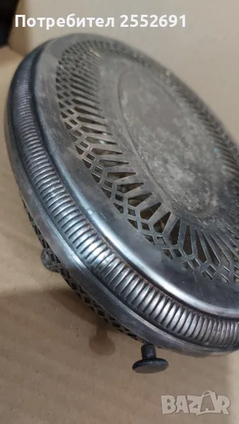 Рядко срещан, посребрен ФРЕНСКИ ажурен свещник с крачета. Наличие на фирмен знак. Размери- 28/18/6см.