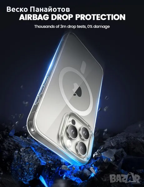 - 【Кристално чист и против пожълтяване】 Кристално чистият гръб ви позволява да се наслаждавате на оригиналната красота на вашия iPhone 16 Pro. Този калъф за iphone 16 Pro има кристална акрилна облегалка, 100% пропускливост на светлина и подобрена технология против пожълтяване, която издържа на различни пожълтяващи агенти като UV лъчи, пръстови отпечатъци, пот и петна и др.