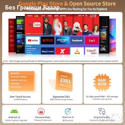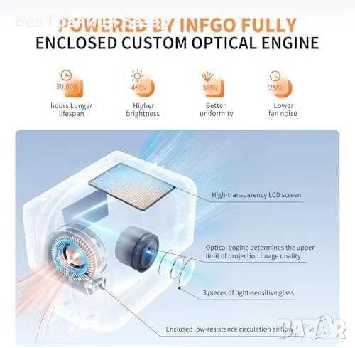 Нов Мощен 1080P 4K проектор INFGO, WiFi 6, 800 ANSI, Автоматична корекция