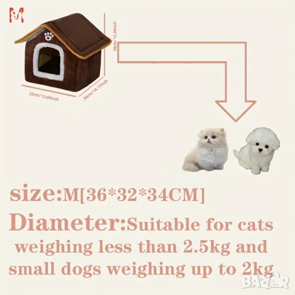 Размер M - 36*32*34cm (препоръчва се за домашни любимци с тегло до 2,5 кг) 29 лева