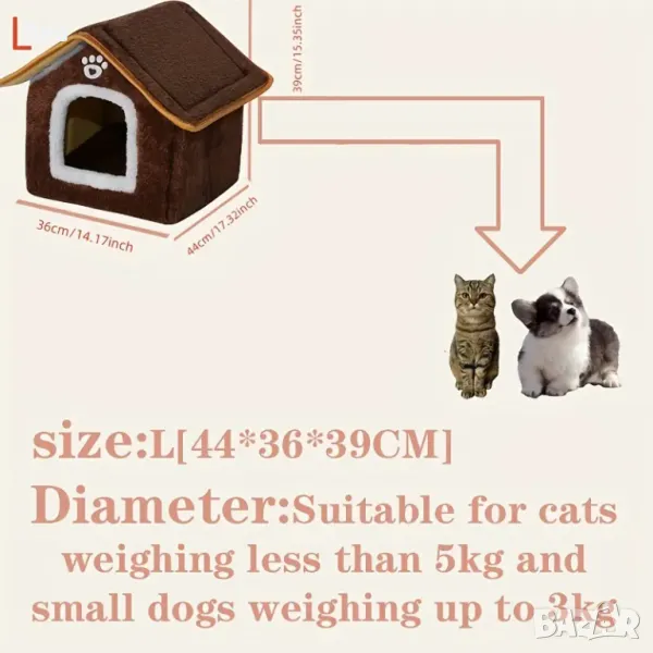 Изберете този уютен дом за вашия любимец, за да му осигурите идеално място за почивка и защита, което ще му осигури комфорт и безопасност всеки ден.