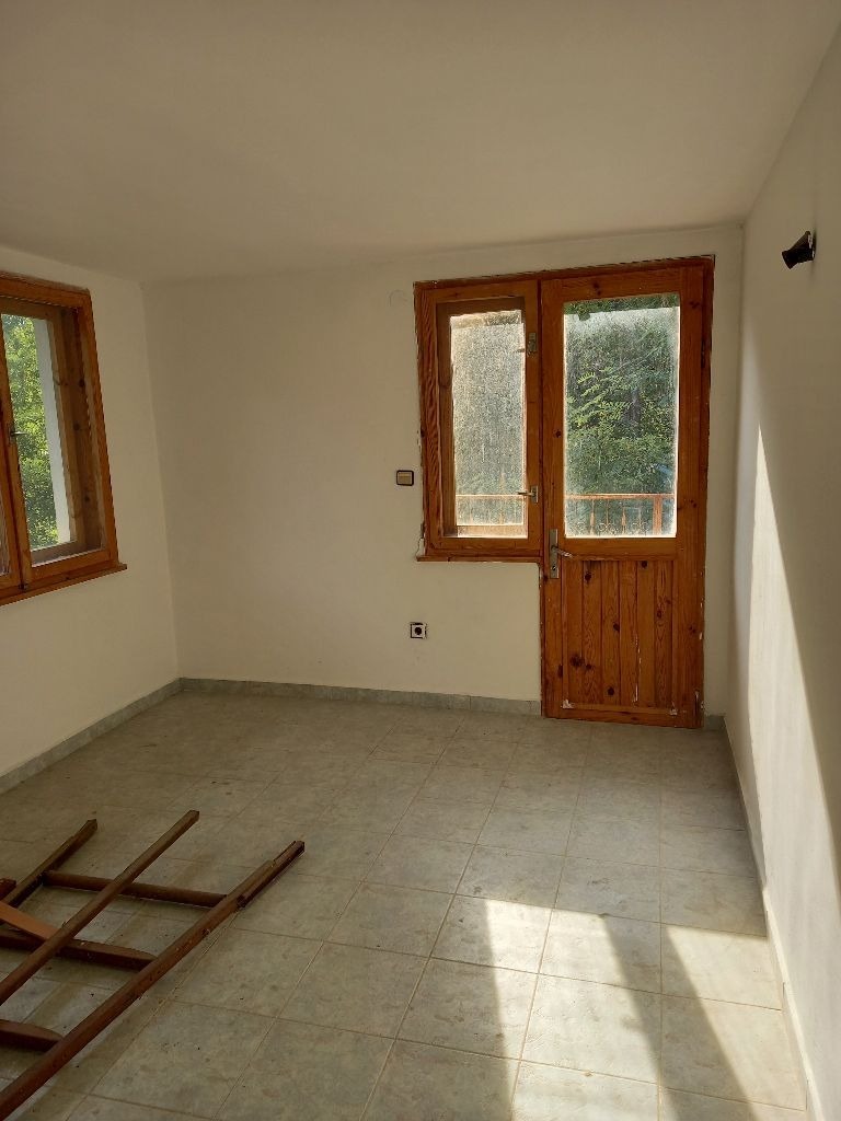 Предлагаме къща във вилната зона на село Реброво(преди селото, ако пътувате от София). Път до къщата(асфалт и чакъл). Имотът се намира почти на върха на един от хълмовете преди село Реброво. Къщата е в перфектно състояние, покрива е здрав, без течове след основен ремонт. На два етажа и един приземен етаж, който не е мазе и няма вкопани части. На всеки етаж по две просторни стаи с тераси. Санитарен възел изграден в имота с баня и тоалетна. Има и втори санитарен възел, макар и по-малък. Ток в имота, вода- има