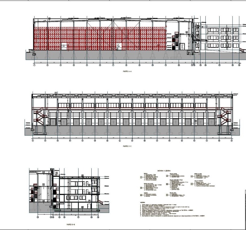 Естественото осветяването на складовите части посредством прозорци на източната и западната фасада на халето, както и светлинни куполи (с автоматично отваряне и димоотвеждане);