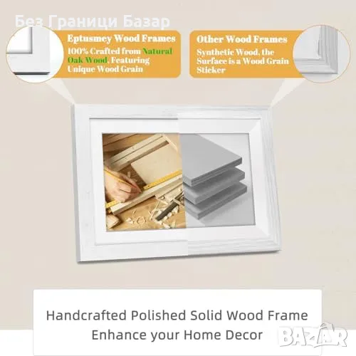 Класически дървен дизайн – Ръчно изработена рамка от дъб, символ на сила и вечна любов, с елегантен бял мат.