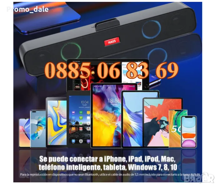 Мощна безжична Bluetooth тонколона саундбар HA05, преносима тонколонка с поставка за телефон