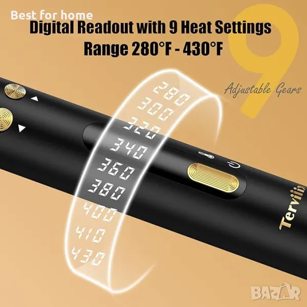 Цифрово отчитане с 9 променливи нагрявания Настройки (𝟮𝟴𝟬~𝟰𝟯𝟬°𝗙) за всички необходими типове коса. Усъвършенстваното PTC отопление се загрява само за 30 секунди, за да ви спести време, докато 100-240V двойно напрежение за пътуване и 6,5 фута изключително дълъг и въртящ се на 360° кабел осигуряват гъвкавост.