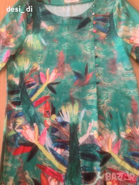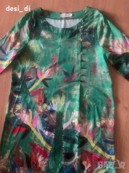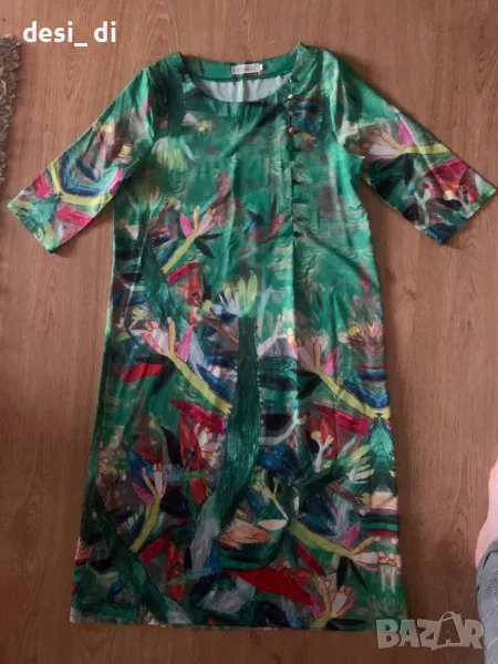 Много красива зелена рокля с наситени цветове