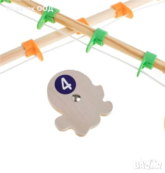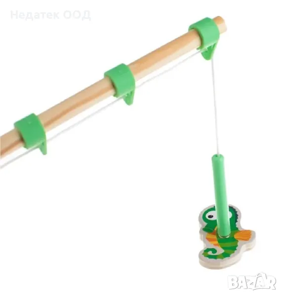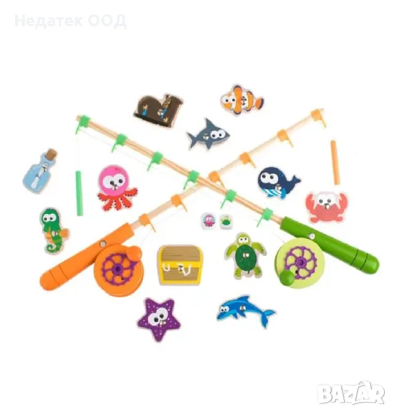 Дървена играчка с 2 пръчки, рибки и малки съкровища от морското дъно за риболов. Всяка фигура и предмет има малък магнит и вие ще се опитате да ги извадите с пръчките. Звучи лесно, но дали е така?
