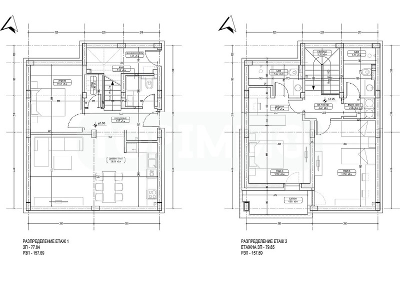 Всяка една къща е разположена върху парцел 364 кв.м. и е с РЗП 157,69 кв.м.