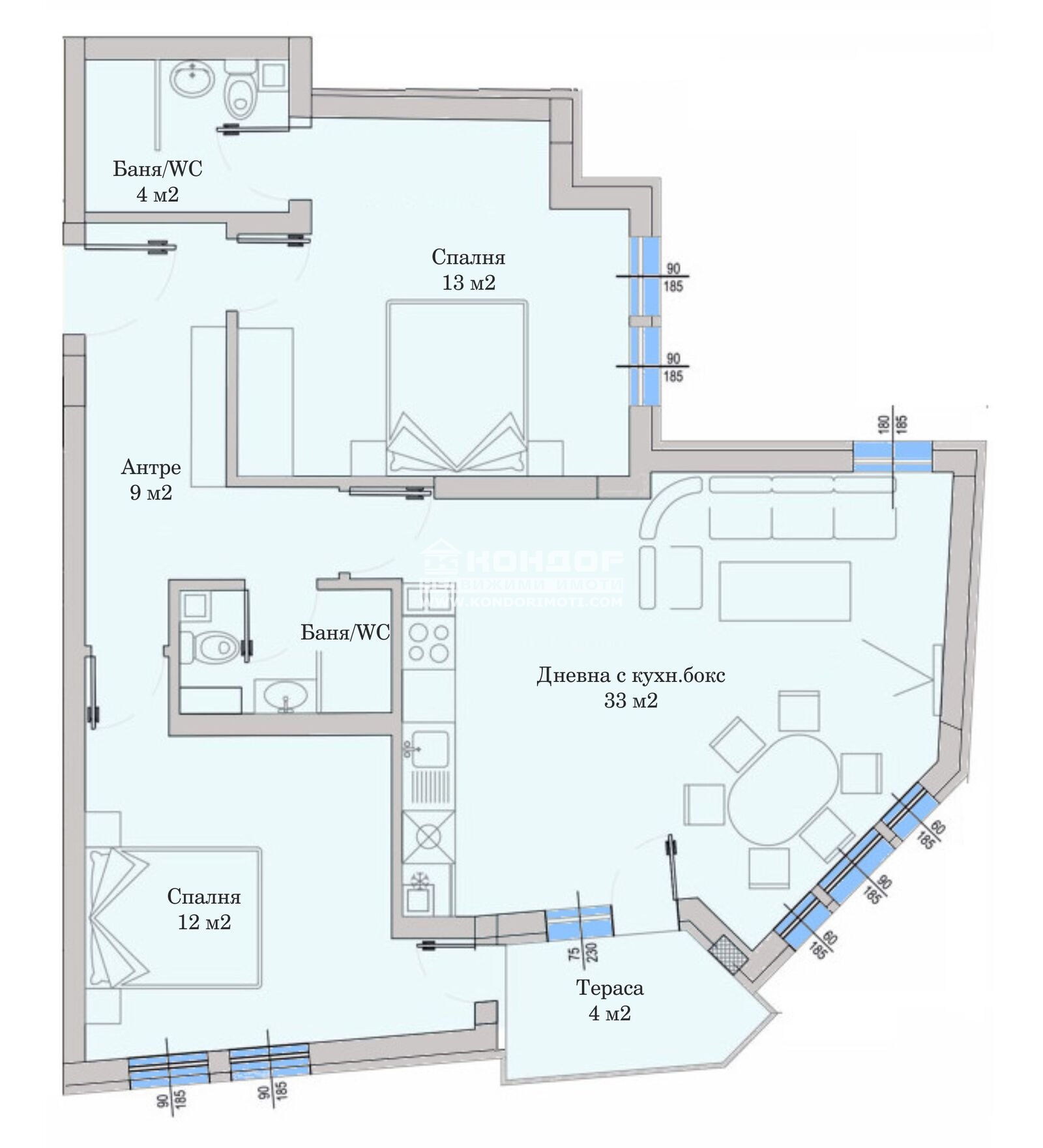 Оферта 65275: МАЛКА СГРАДА -ТОП ЛОКАЦИЯ в сърцето на Пловдив на метри от Духовната Семинария и Капана! Сградата ще бъде завършена до края на годината !!! Предлагаме на вашето внимание просторно жилище в кооперация с десет апартамента - предимство, търсено от множество клиенти на пазара на фона на масовото предлагане на имоти в огромни комплекси - така че не изпускайте своя шанс да закупите имот точно тук! Просторен апартамент с правилни форми само по два на етаж, един тристаен и един двустаен. Жилището се състои от входно антре, просторен ъглов хол с трапезария и кухненски бокс 33кв.м., две големи самостоятелни спални: детска 12кв.м., родителска 14кв.м. със собствена баня, втора баня с тоалетни и една тераса. Кооперацията се изпълнява от строителна фирма с множество готови сгради, построени през годините. Степен на завършеност: стълбище - гранит, луксозни общи части ,жилища -шпакловка, замазка, PVC цветна немска многокамерна дограма, хидравличен асансьор, парапети и др. Свободни гаражи и паркоместа. Разсрочено плащане в рамките на строителството.
