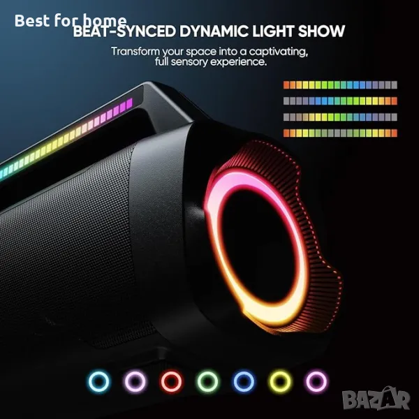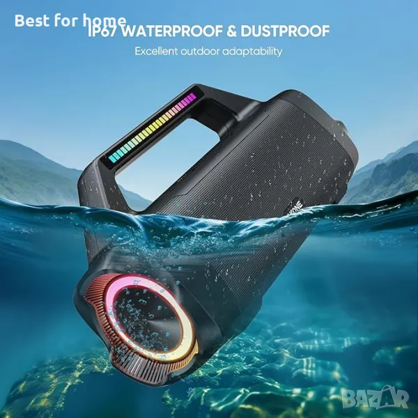 Отлична адаптивност на открито: Насладете се на безпроблемно забавление на открито с IP67 водо- и прахоустойчива външност. Най-новият Bluetooth 5.3 осигурява по-добро аудио изживяване, по-голяма гъвкавост и по-дълъг живот на батерията. До 80 W мощен изход и възможности за истинско безжично стерео (TWS) сдвояване за динамично слушане на плажно парти на басейн, къмпинг или навсякъде.