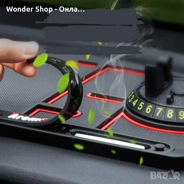 Тази многофункционална подложка държи вашите вещи сигурни, като добавя допълнително удобство. Използвайте я като стойка за телефон, органайзер, дисплей за номера и дори като дифузер за аромати – всичко в една елегантна, противоплъзгаща подложка. 360° въртящата се стойка се регулира в портретен или пейзажен режим за по-безопасна навигация и разговори без ръце. Съвместима с всички размери и марки телефони.