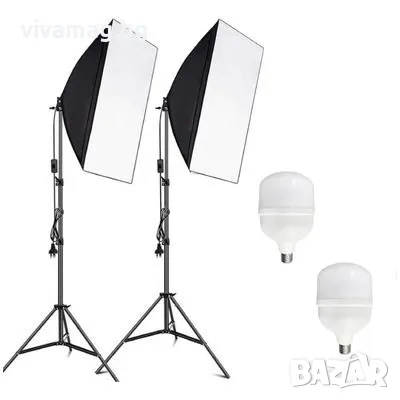 Професионален комплект за студийно осветление – софтбоксове 50x70 см, регулируеми стативи и двуцветни LED крушки