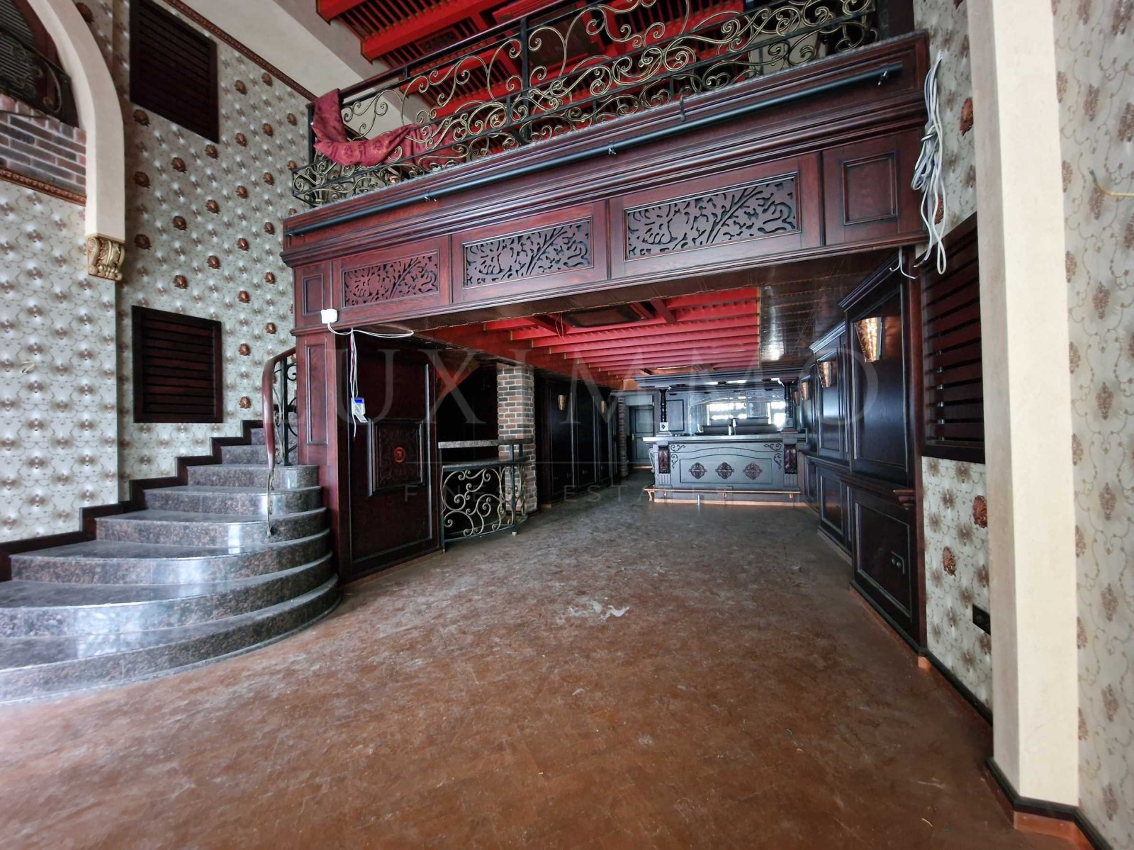 Имотът е луксозно завършен, предлага се полуобзаведен, на две нива, с атрактивно вътрешно стълбище, емпоре и ярки тавани. Интериорът е предимно класически, тежък, подбран в духа на сградата с история.