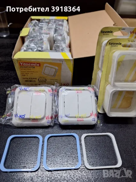 Ключ двоен за осветление Yasemin, бял с декоративна бяла рамка. Налични и 2бр светло сини рамки. Нов. Налични 80бр.
