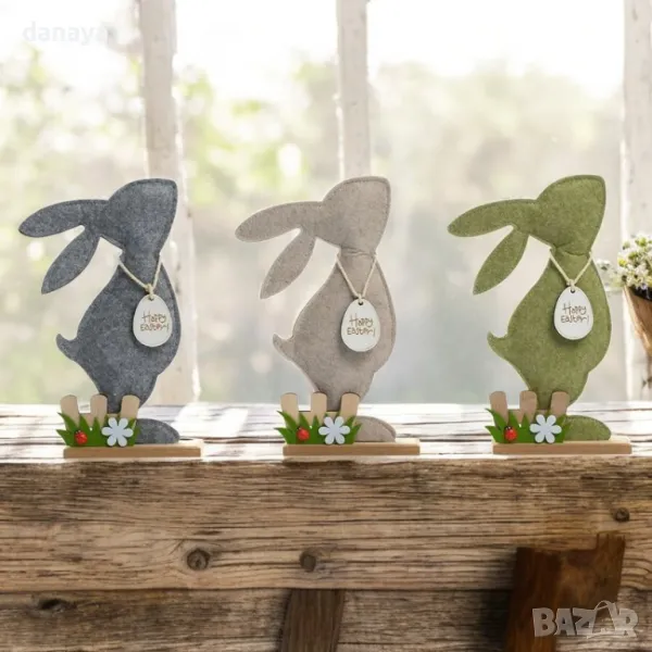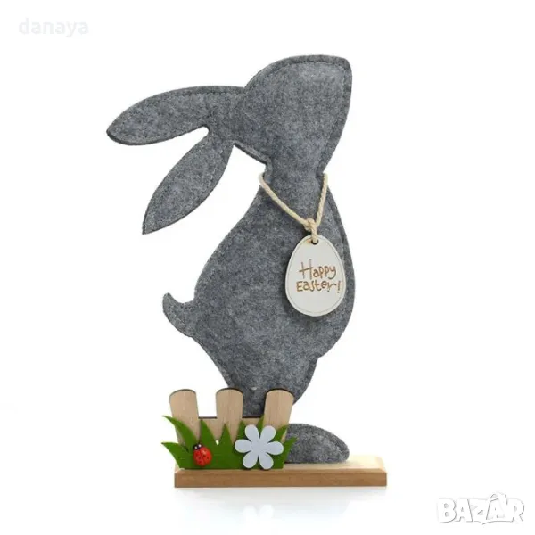 Добавете топлина и празнично настроение с това очарователно филцово зайче на стойка! С декорация малка оградка с цветя и тревичка, то ще придаде уют и свежест на всяко пространство. Изработено от филц, върху дървена поставка, това зайче е перфектно за всяка великденска украса.