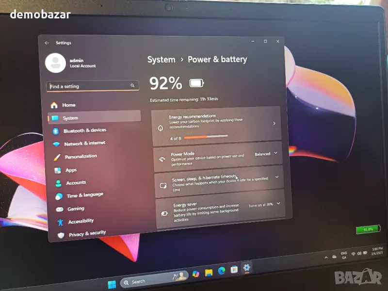 Екранът е ярък и с Full HD резолюция, което е подходящо за размера, а