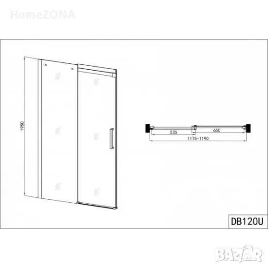 Параван за баня с плъзгаща врата 120х195 см за монтаж между две стени.