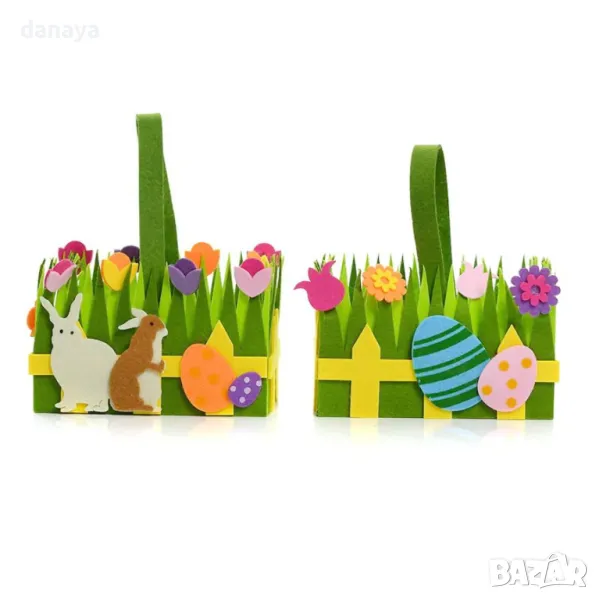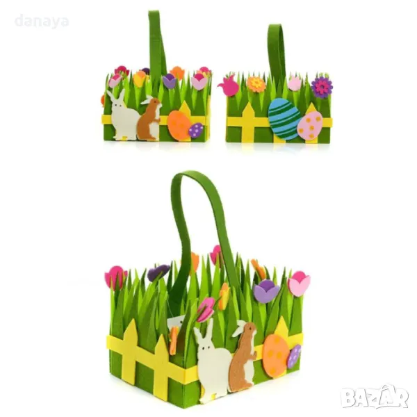 Тази цветна кошничка за великденски яйца ще направи празника ви още по-вълшебен! Украсена с шарени яйца, великденски зайчета и цветни цветя, тя е идеална за поднасяне на великденски яйца и сладки изненади.