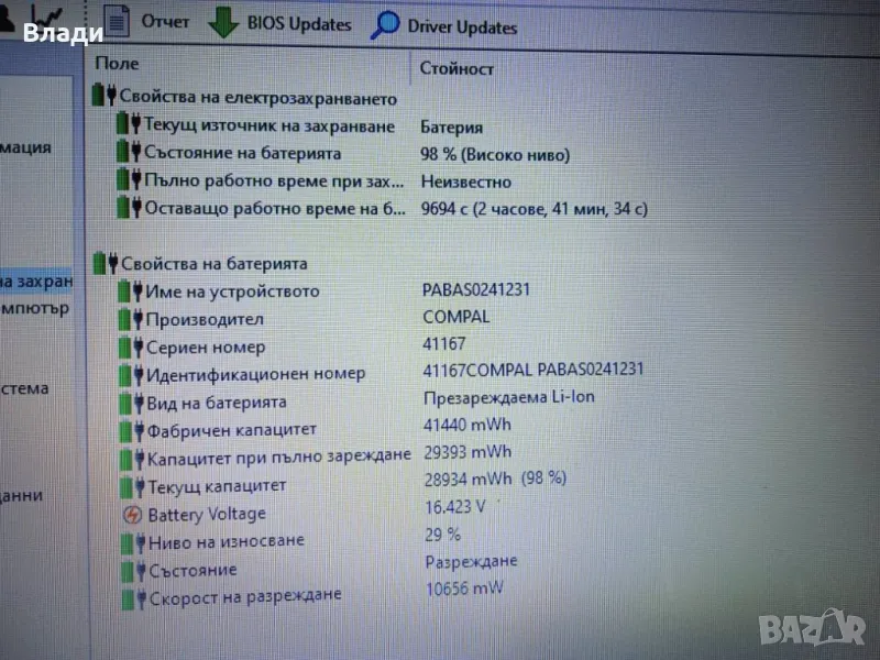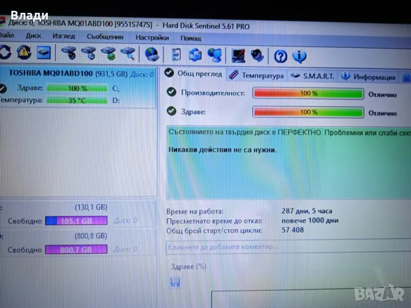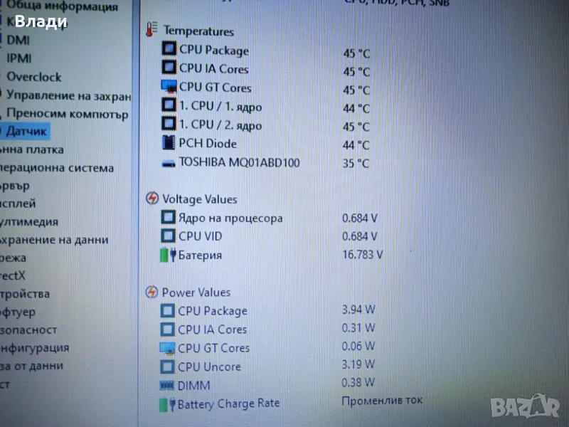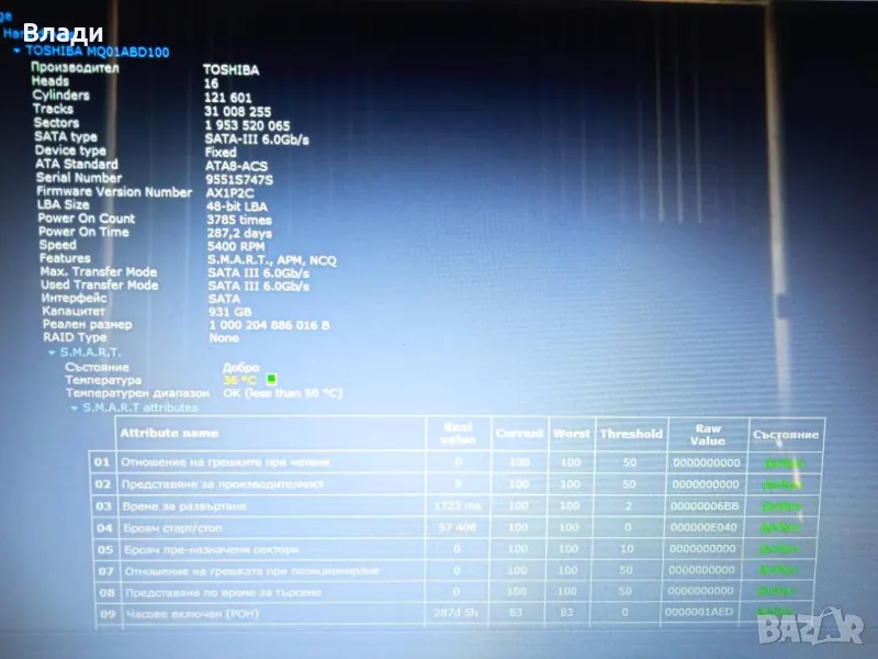Инсталиран с Windows 10 Home 64 bit ,HDD Sentinel,Speccy и Aida 64,за да се тества преди да се плати.