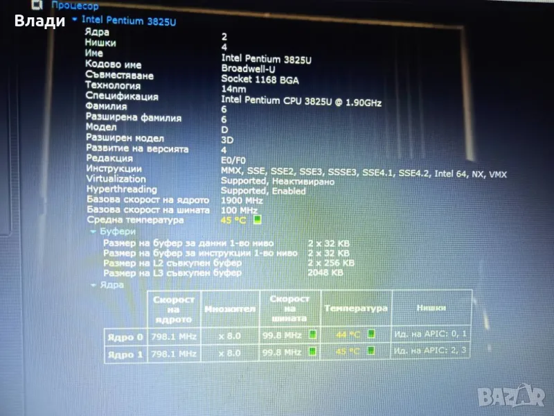 Сменена паста на процесора и видеокартата ,почистена охладителна с-ма и готов за употреба. Нямате допълнителни разходи !!!