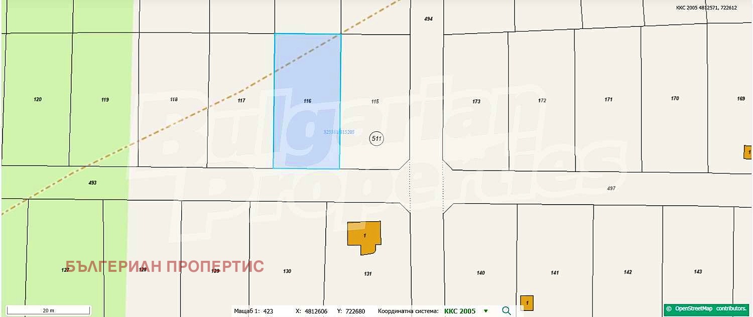 Имотът е с площ 521 кв. м. с правоъгълна форма и равен. Парцелът е подходящ както за строеж и инвестиция, така и за лично ползване за постоянно живеене.