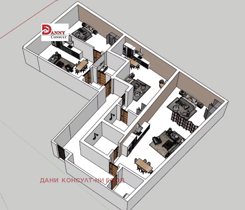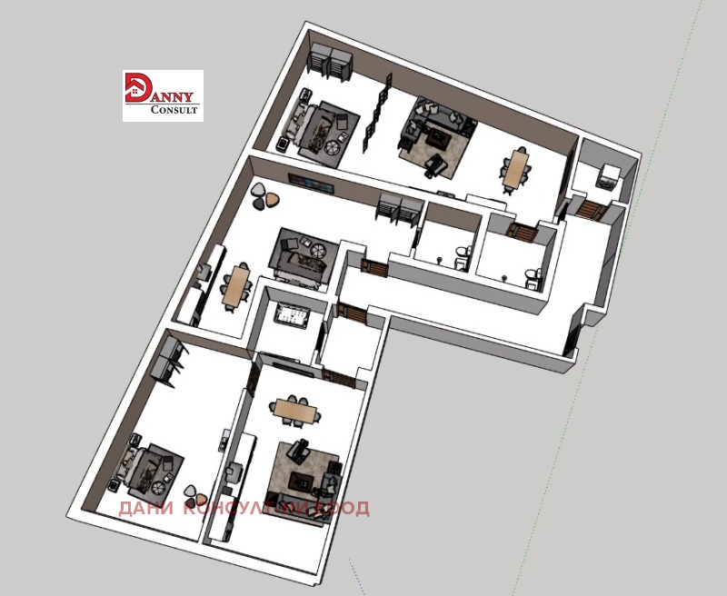 Агенция за недвижими имоти ДАНИ КОНСУЛТ предлага за продажба многостаен апартамент, ново строителство в гр. Велико Търново, кв. Бузлуджа. Жилището е с РЗП от 172.65 кв.м. /ЗП 149.71 кв.м и общи части 22.94 кв.м./. Намира се на трети етаж, изложение запад и се състои от: коридор/антре, склад, трапезария/дневна/ кухненски бокс, три спални и три бани, всяка с тоалетна. При закупуване с цел инвестиция има възможност за обособяване на две боксониери и един двустаен апартамент. Предвидени са и три отделни табла за ток. Апартаментът се продава на мазилка, входна блиндирана врата, оставени ел. отвори, 6-камерна дограма Златен дъб и тераси с налепени плочки. Сградата е 5-етажна, санирана, с асансьор, контрол на достъпа, общите части са с подово покритие камък гранит, измамзани и боядисани стени. Има АКТ 14, всеки момент се очаква Акт 15 и Акт 16 до 31.12.2025 година.