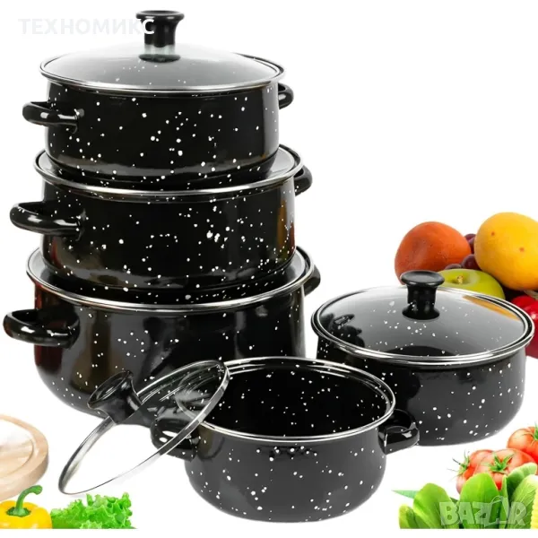 Комплект тенджери Pandeia DP-8357, Емайл, 5 броя