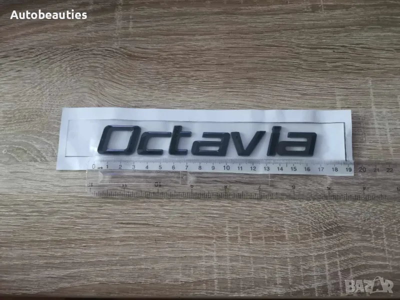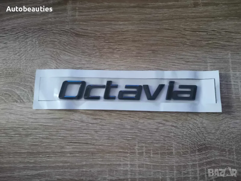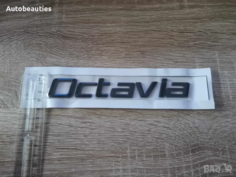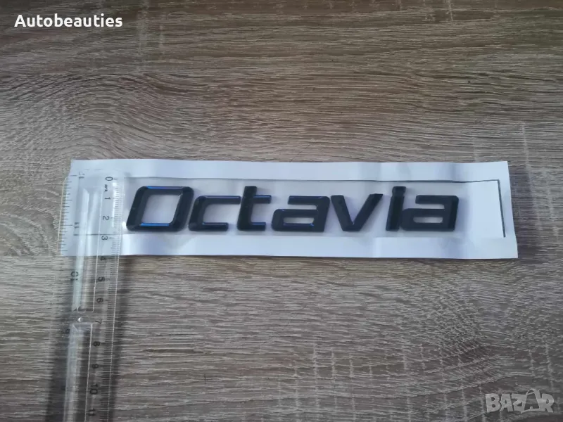 нов черен надпис за модела Octavia на Skoda в стария шрифт. Размерите са дадени на снимките.