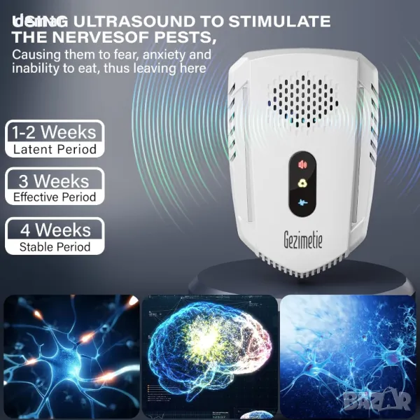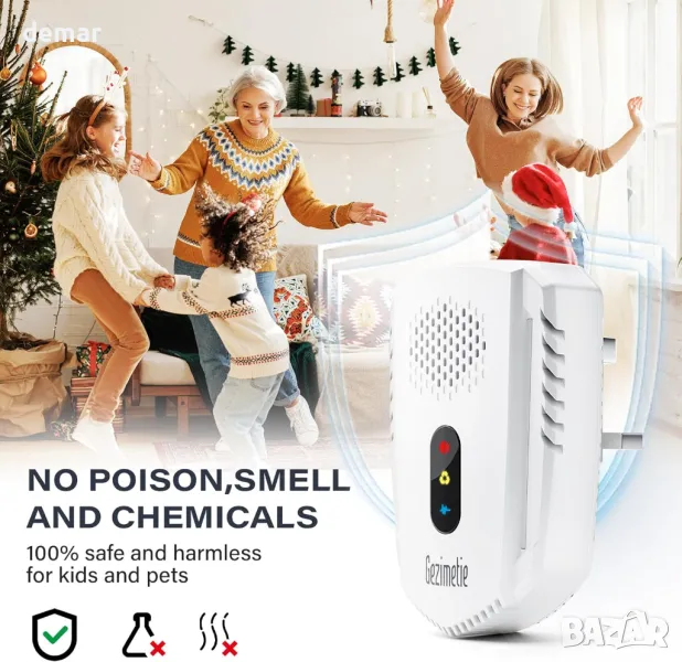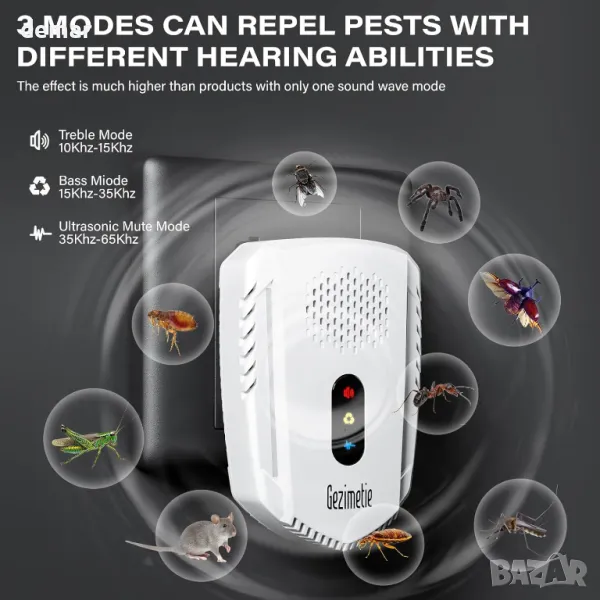 Този модернизиран ултразвуков уред за отблъскване на вредители от 4 комплекта комбинира интелигентни електромагнитни вълни с променлива честота и двойна ултразвукова технология за ефективно отблъскване на над 30 вредители, включително гризачи и насекоми, в площи до 150 кв. метра. Безопасен за деца, домашни любимци и бременни жени, той работи без химикали, радиация или миризми, осигурявайки тихо, без отблясъци и енергийно ефективно 24/7 решение за борба с вредителите. Отличаващ се с усъвършенстван чипсет с интелигентен режим против съпротива, той разстройва нервните системи на вредителите, използвайки 4-8 импулса с променлива честота в секунда, предотвратявайки адаптирането. Неговото интелигентно честотно преобразуване предлага три нива на звукова вълна (10kHz-65kHz) за повишена ефективност. Plug-and-play дизайнът, изграден от устойчиви на атмосферни влияния и топлина материали, е идеален за домове, мазета, тавани и гаражи. Икономическият пакет от 4 максимизира покритието и ефективността, което го прави надеждно екологично решение.
