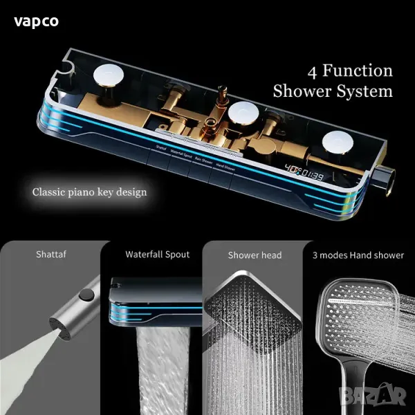 Чисто нов модерен интелигентен термостатен 5в1 душ за баня с дисплей и LED подстветка
