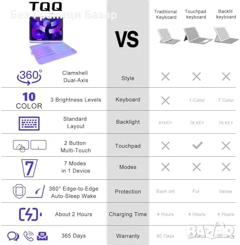 Лаптоп стил: Регулируема 10-цветна RGB подсветка и пълен ред iPadOS бързи клавиши.