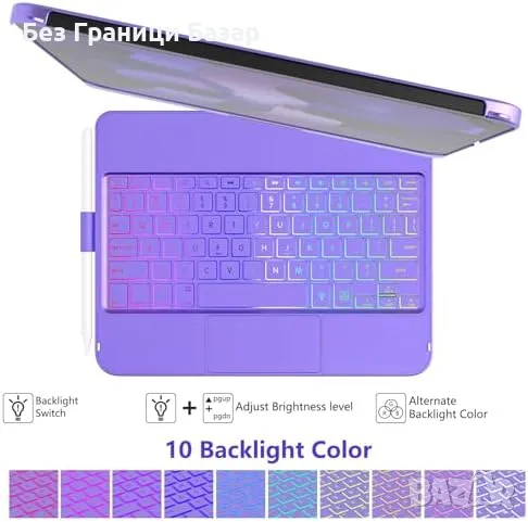 Нов Калъф с клавиатура за iPad 10-то поколение 10.9” с тъчпад и RGB кейс