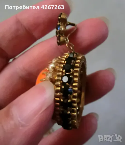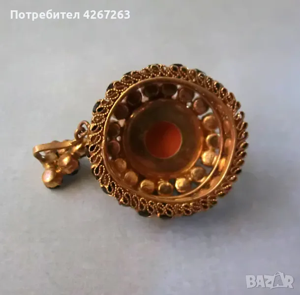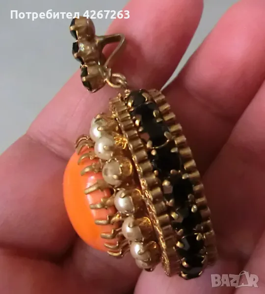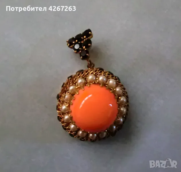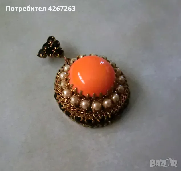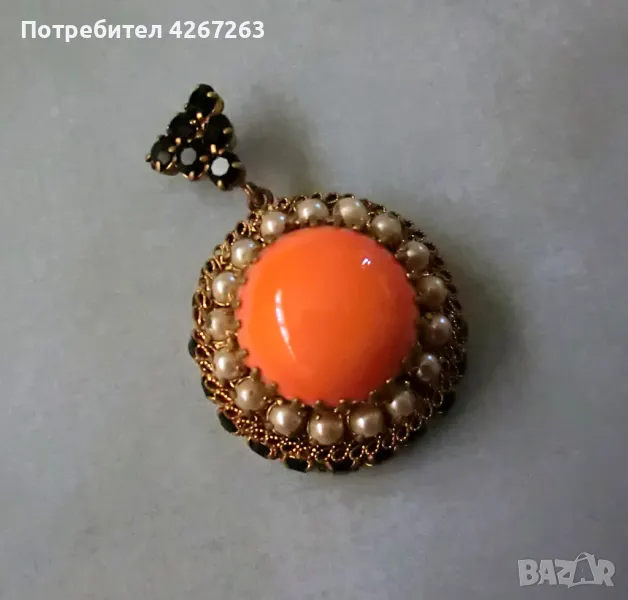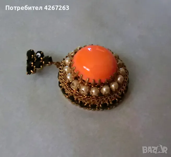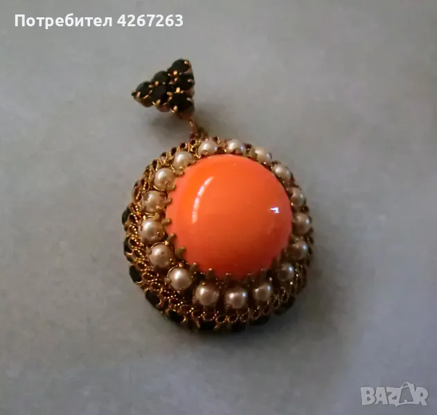 Разкошен старинен медальон с голям стъклен кабошон, перли и кристали → Обява 49407281