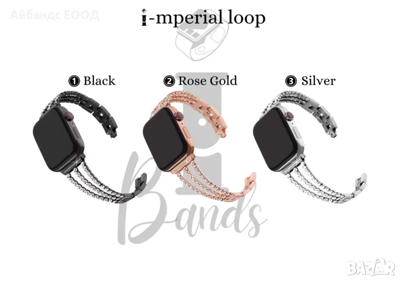 Ключови думи: apple епал епъл аппле апъл апал елегантна elegantna metalna, метална kaishka каишка loop band strap huawei samsung garmin amazfit ticwatch смарт уоч уач watch smart часовник chasovnik хуауей самаунг амазфит гармин тикуоч метални metalni luksozni луксозни си си2 златна zlatna rose gold silver роус голд силвър кристал кристални