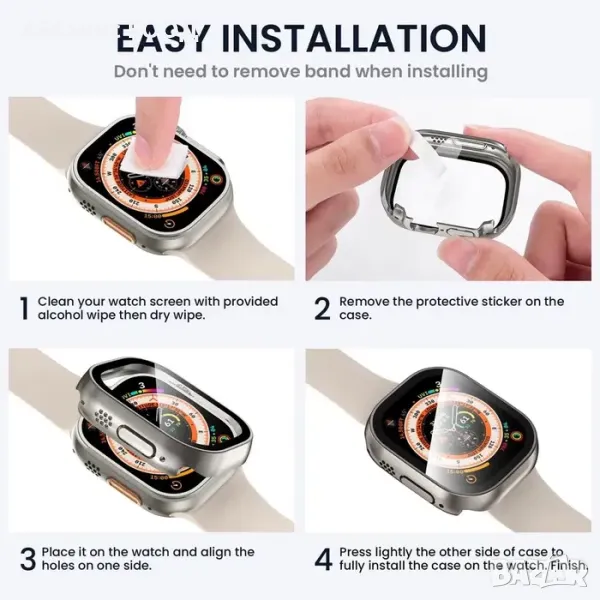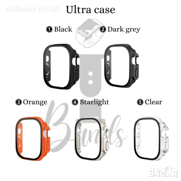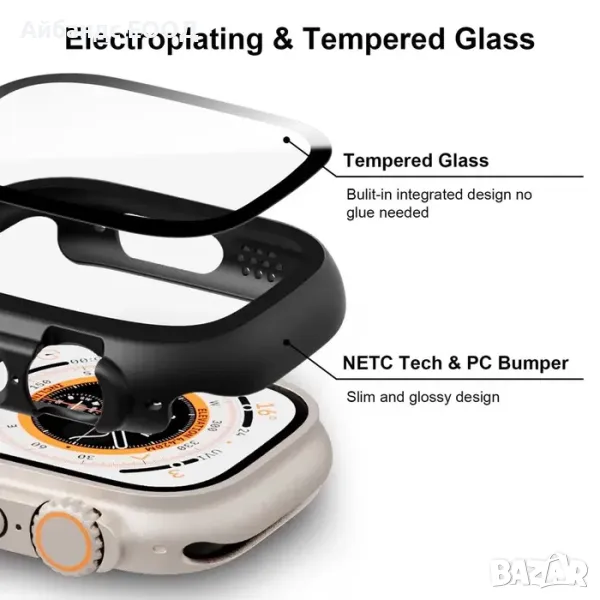 apple watch кейс, бъмпер кейс, PC bumper, tempered glass cover, full cover case, протектор за apple watch ultra 49mm, screen protector case, iwatch bumper, apple watch аксесоари България.