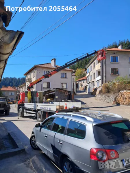 Автовишка под наем.Рязане на опасни дървета с автовишка,ремонт на покриви,смяна на улуци,миене на фасади,саниране