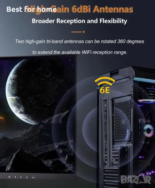 Минимизирано закъснение за вашия компютър - WiFi 6E адаптер с OFDMA и MU-MIMO технология намалява закъснението, така че можете да се насладите на игри в реално време или завладяващо VR изживяване дори в натоварени мрежи. [160MHz честотна лента - Доставяне от 80 MHz до 160 MHz, двойна пропускателна способност, изключително ниска латентност и непрекъсната свързаност.]