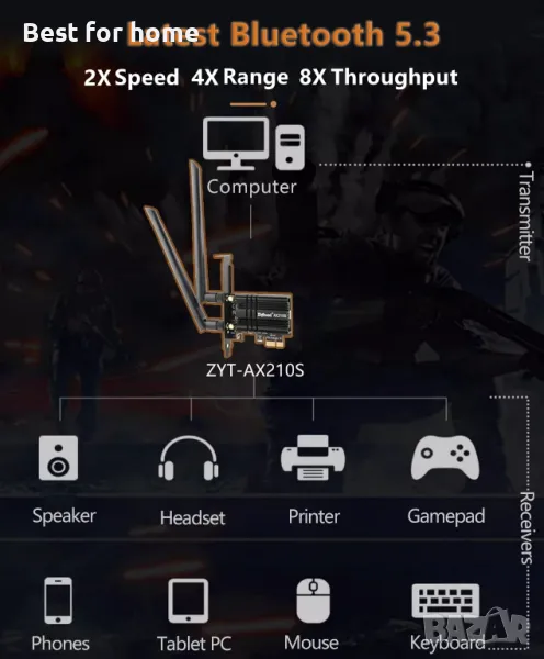 WiFi мрежова карта AX210, 2400 Mbps, Bluetooth 5.3