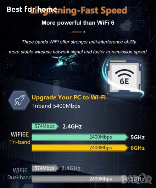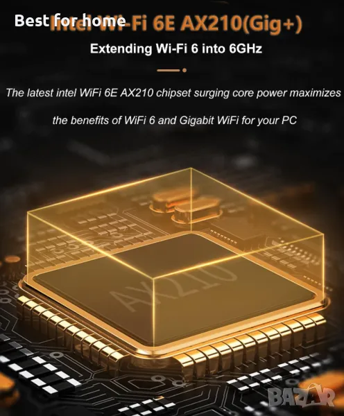 Intel AX210NGW чип и трибандов WiFi 6E стандарт - Разширете до по-ясната, по-широка честотна лента от 6 GHz за повече честотна лента и по-високи скорости; Увеличете общите си скорости до 2402Mbps (6 GHz) плюс 2402Mbps (5 GHz) плюс 574Mbps (2,4 GHz); [Поддържа Linux Windows 11/10 64-bit за настолен компютър; Обратно съвместим с IEEE 802. 11 ac/a/b/g/n.]